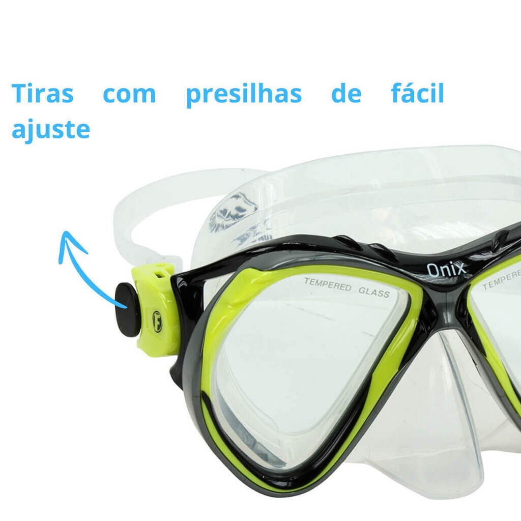 • As lentes de vidro temperado oferecem uma visão nítida e sem distorções, permitindo que você explore o mundo subaquático com clareza.