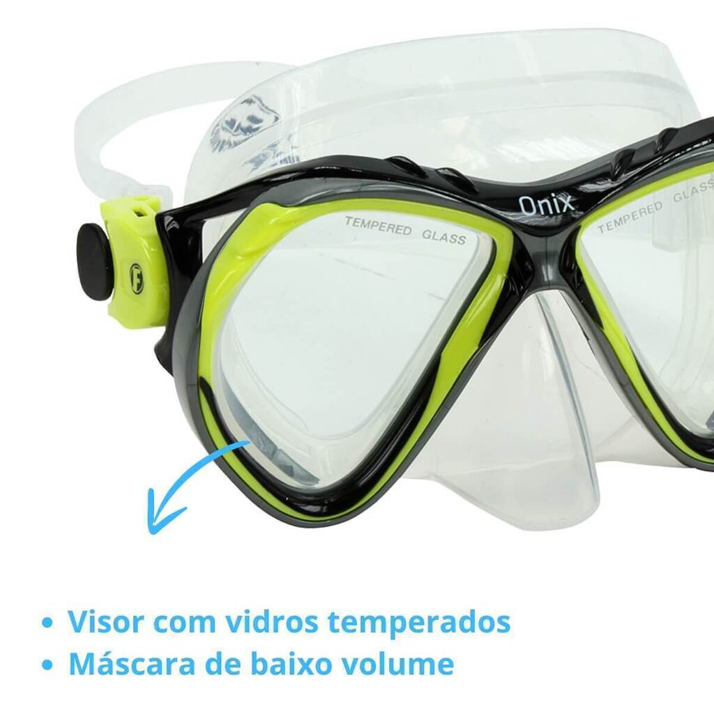 • A versatilidade da Máscara Onix permite usá-la tanto para o mergulho autônomo quanto para a pesca sub, graças ao seu baixo volume interno, que é ideal para a prática de apneia.