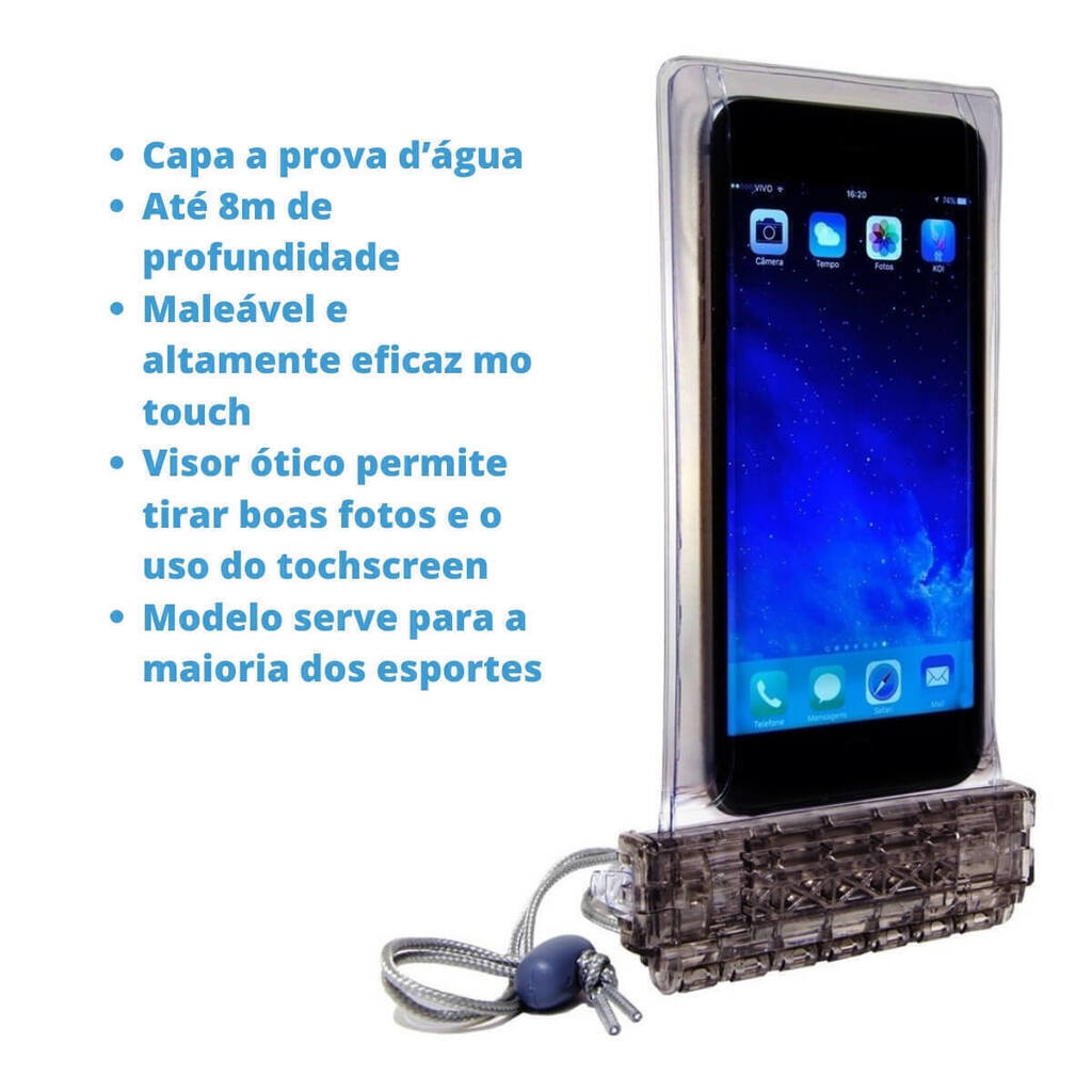 A Bolsa Celular Smart é a companheira ideal para quem ama explorar o mundo sem deixar o celular de lado. Seja na praia, piscina, cachoeira ou trilha, mantenha seu smartphone protegido contra água, areia e poeira.